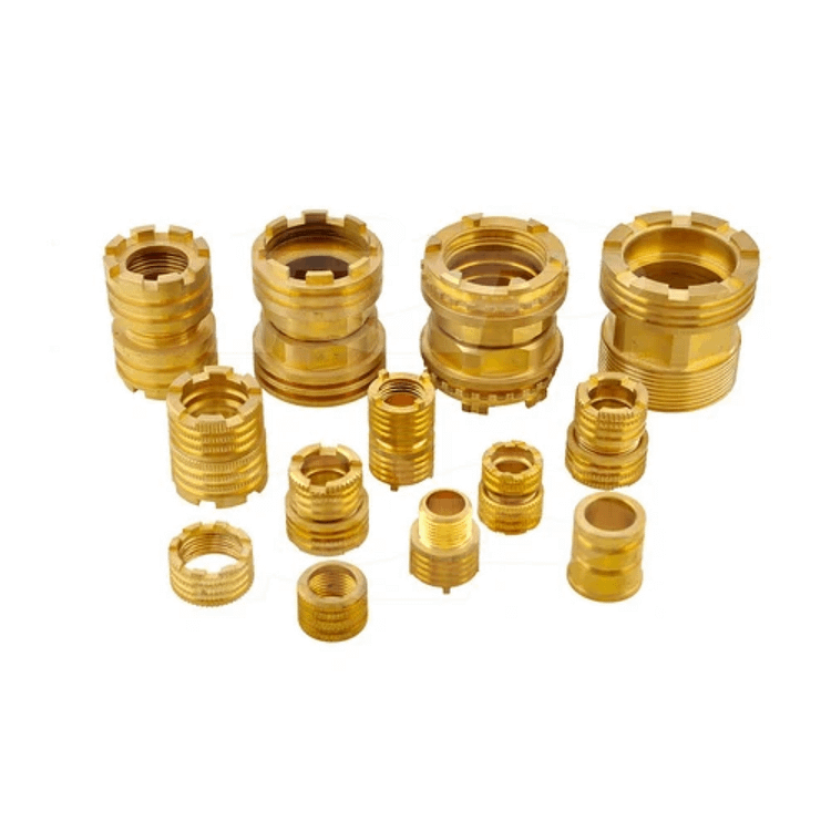 Brass inserts are available in a variety of sizes, thread types, and configurations to suit different applications and design requirements. Whether for metric or imperial threads, coarse or fine pitches, standard or custom lengths, brass inserts can be tailored to meet specific project needs. Additionally, inserts may feature knurled or flanged exteriors for enhanced retention and stability in the host material, providing added security in critical applications.